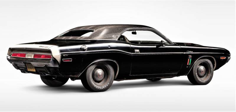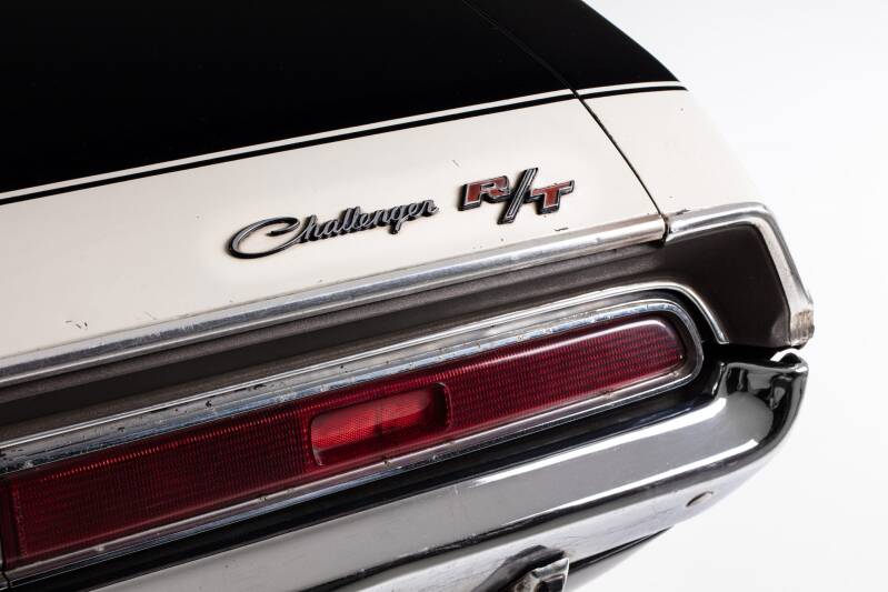 For style, the car was equipped with a “bumble bee” white stripe on the tail, hood pins, houndstooth interior, and the real conversation piece—the Gator Grain black vinyl top. The car is one of just 23 Hemi four-speed R/T SE Challengers sold in the model’s debut year, and it is possibly the only car ever built with these performance and trim options